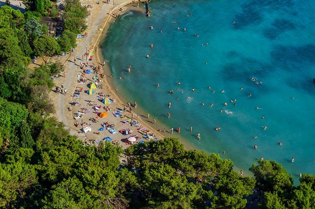 Vodicének számos, hosszan elnyúló strandja van. Ki-ki kedve szerint választhat a homokos, kavicsos vagy kiépített betonos strandok közül. A tenger lassan mélyül, ezért kedvelt célpont a gyermekes családok számára.