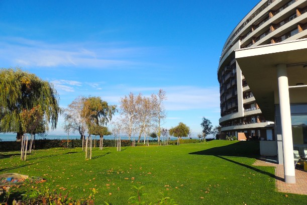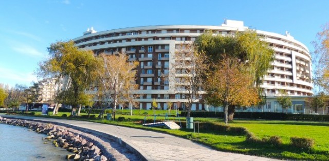 Az épület modern stílusú, egyedi kialakítása a siófoki tópart egyik látványosságává vált. Az épület földszintjén üzemelő wellness részleg és egyéb szolgáltatások egész évben igénybe vehetőek.